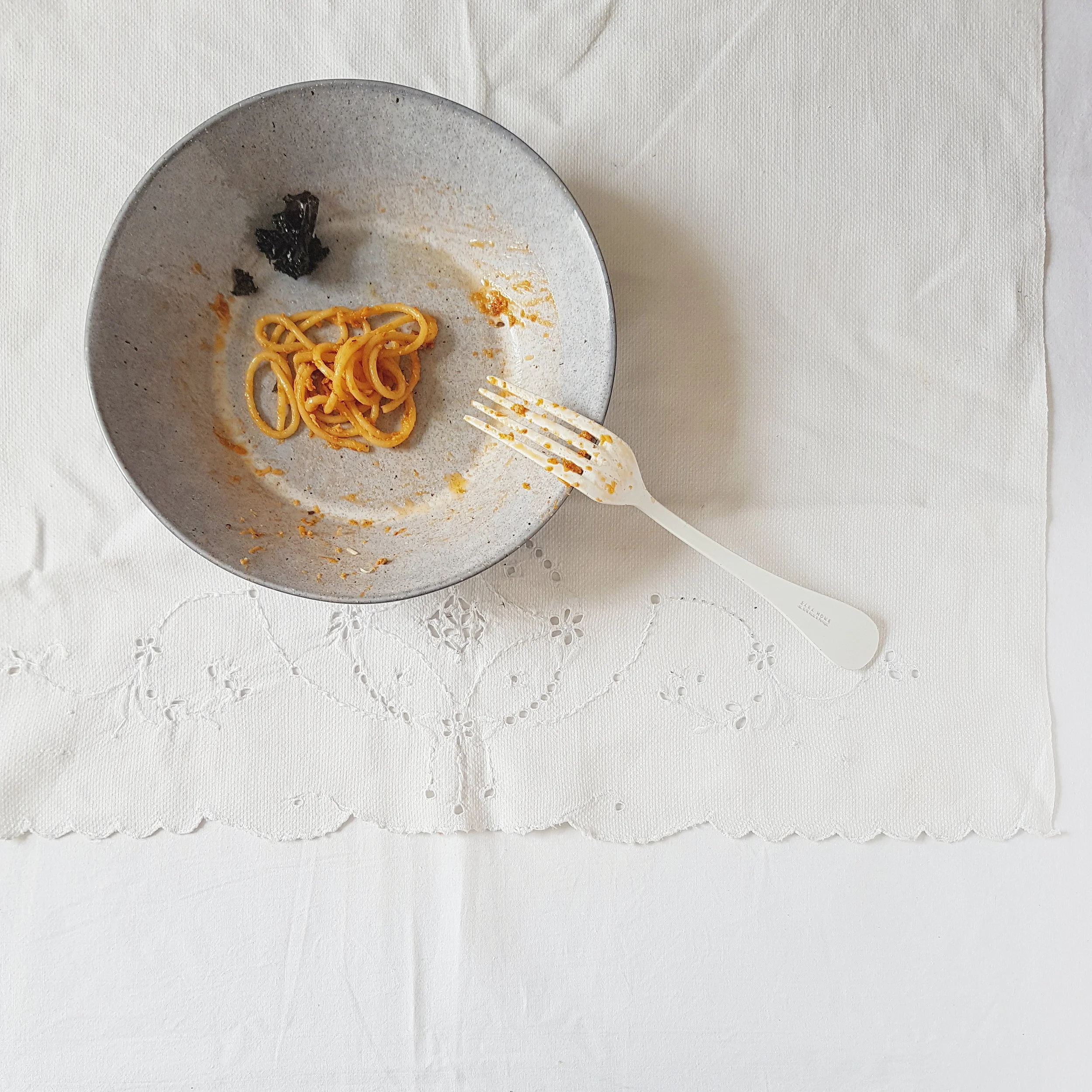 To serve, cook your spaghetti in a large saucepan according to the packet instructions, reserving a small cup of the cooking water. Drain the pasta and put in back in the pan it was cooked in and stir through a few generous tablespoons of the warm sauce, loosening with a splash of the pasta cooking water.