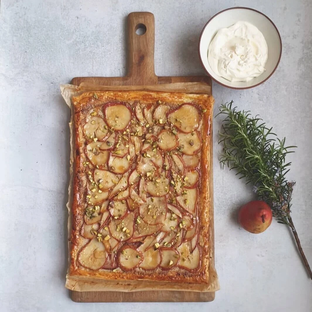 A few weeks ago we received some pears as part of our delivery, so I decide to bake them into a simple puff pastry tart with almonds and cinnamon - all of which I had to hand in the kitchen cupboard. It served as a welcome pudding, warm with a dollop of crème fraîche and there was still enough leftover to have cold with coffee mid-morning the next day.